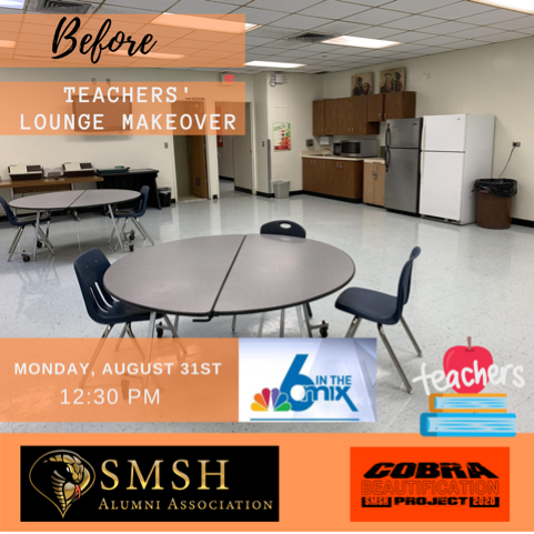 The SMSH Alumni Association collaborated with the South Miami Senior High School administration, faculty, staff, SMSH alumni, and Interior Designer Martin Amado to bring life into the teachers' lounge inside the SMSH campus.